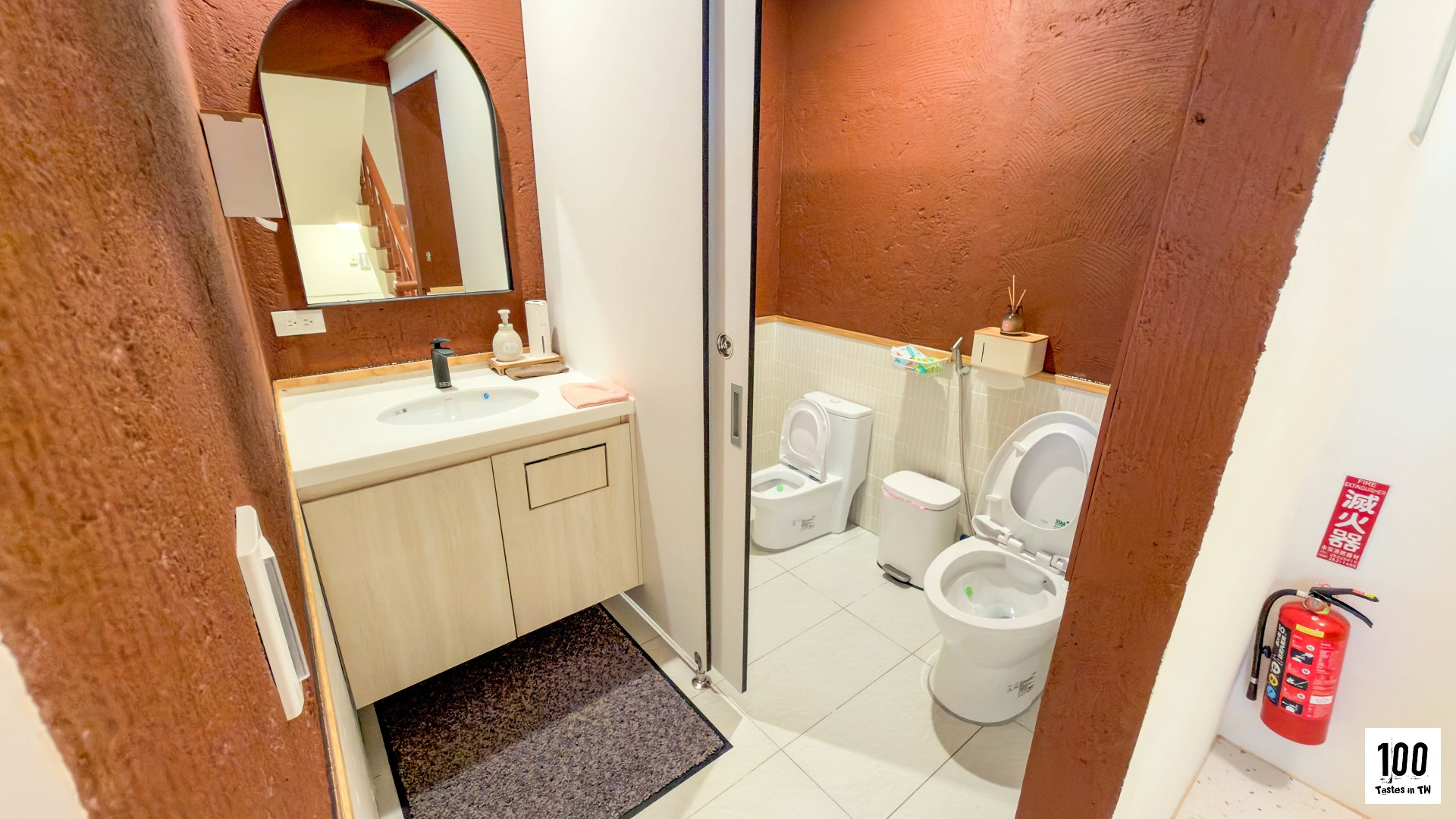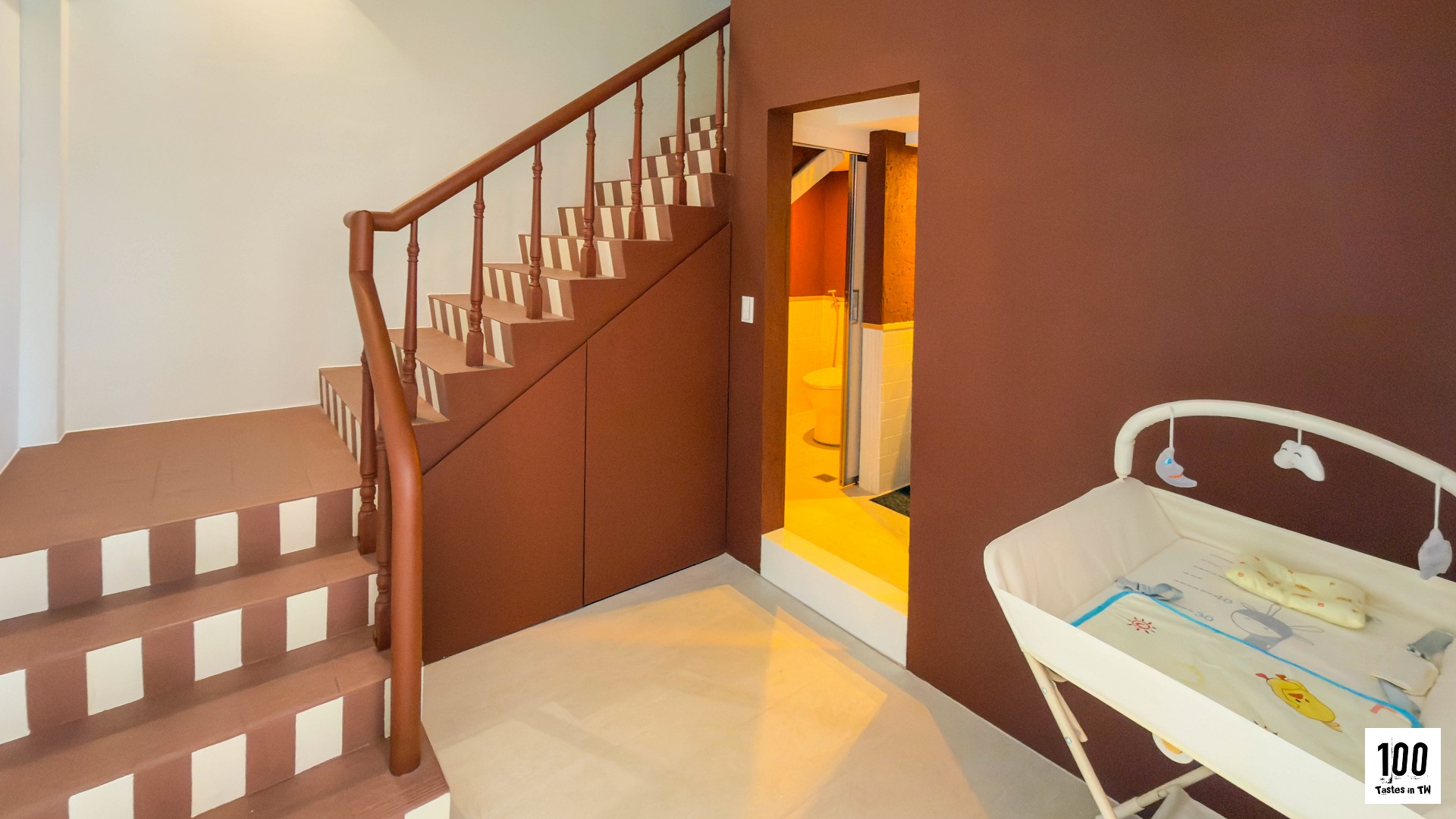 你有注意到嗎?Birth 連樓梯都特地塗成跟戶外軟墊一樣的棕白相間,看到這個小細節,忍不住會心一笑。