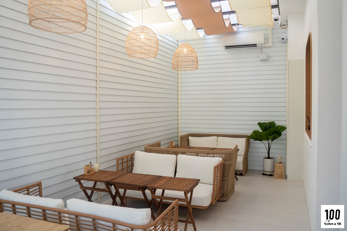 看到這畫面,不說還以為我來到哪間度假村!Birth 把海島的慵懶感直接搬進店裡,竹子圍牆、屋簷上的稻草和花卉裝飾,全都是師傅一條條親手固定的;連棕白相間的戶外躺椅也是特別訂製款(需脫鞋),看得出對細節的講究。
