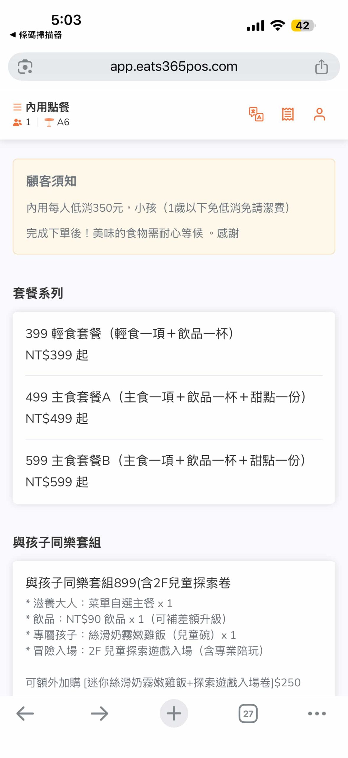 ✎ 7 歲以上每人低消 $350