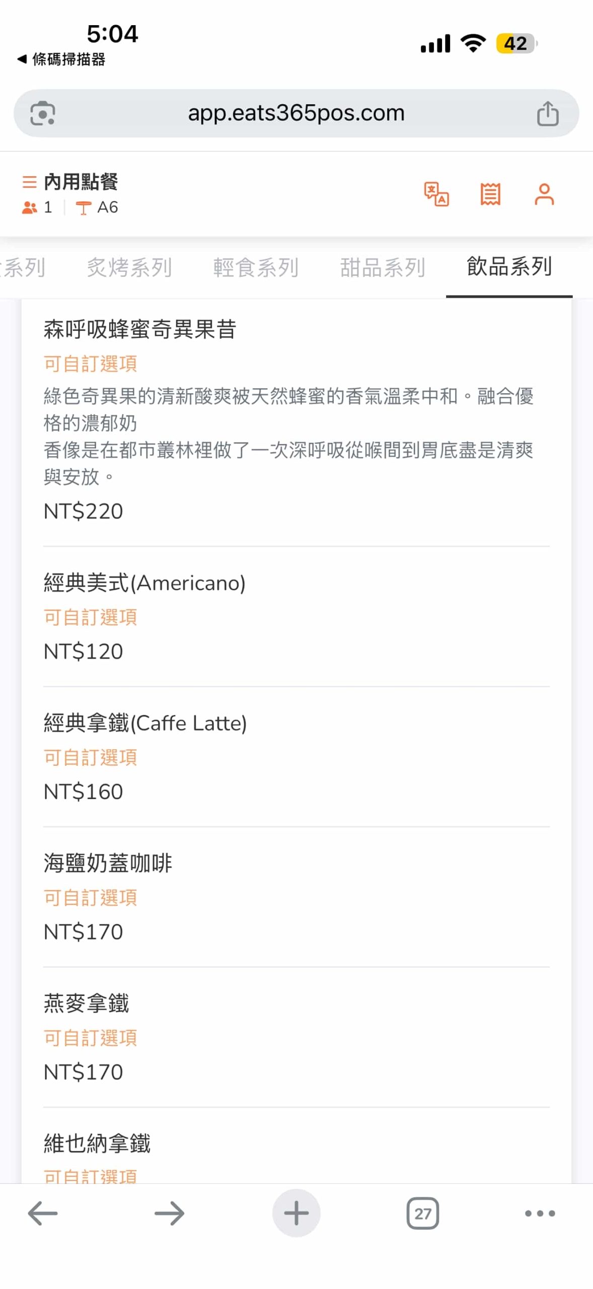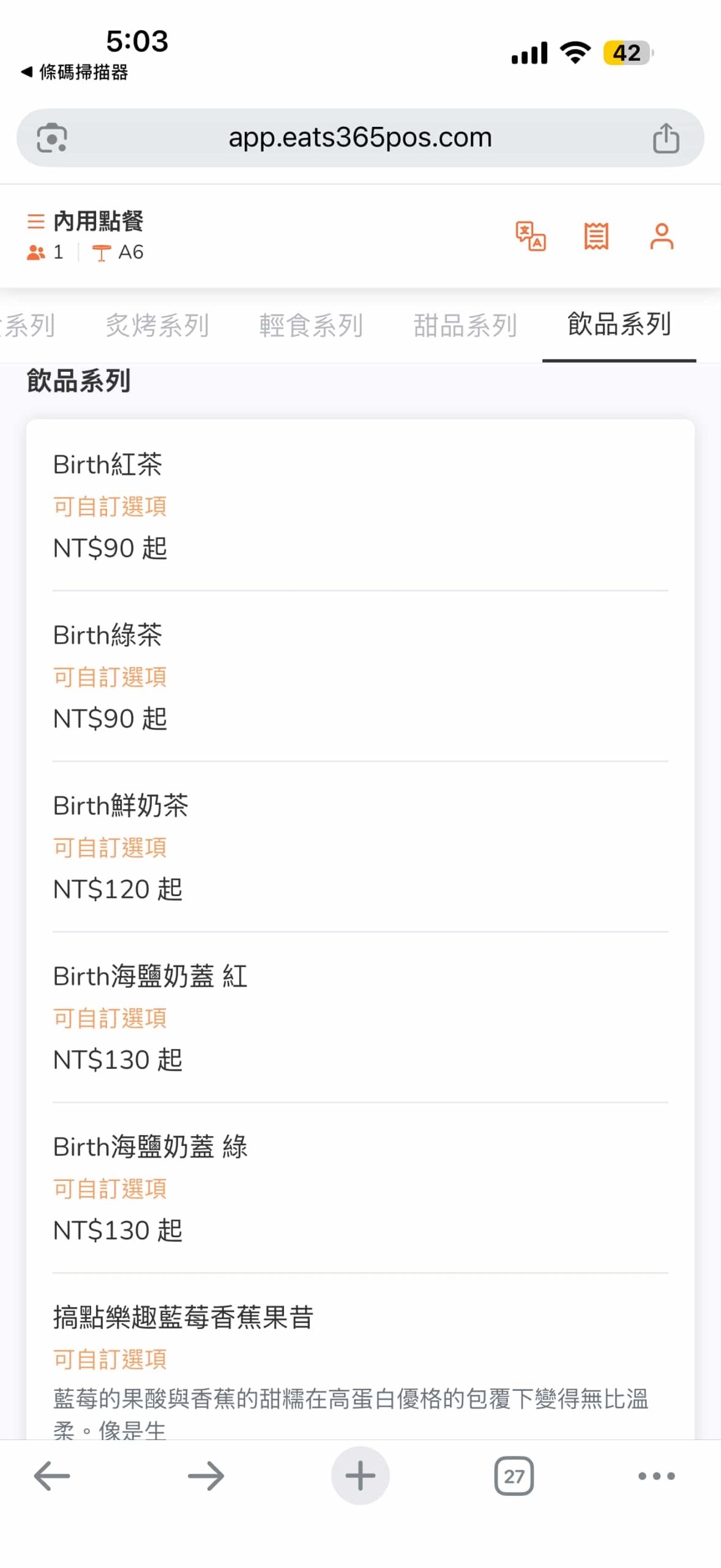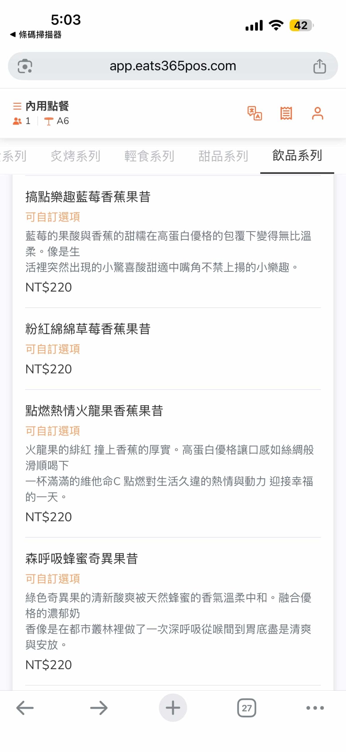 店家目前並未提供單張菜單,想嚐鮮的朋友請先參考線上點餐系統截圖囉!