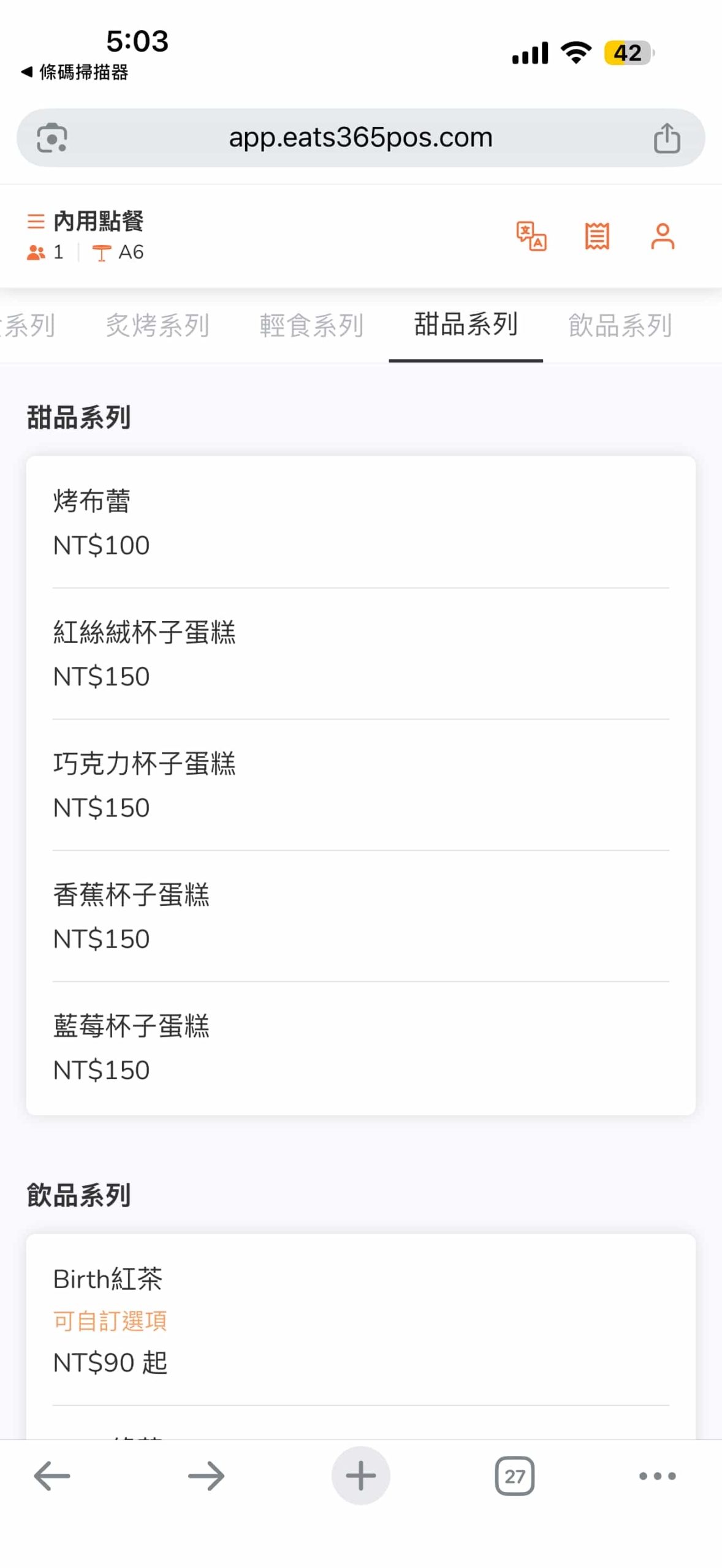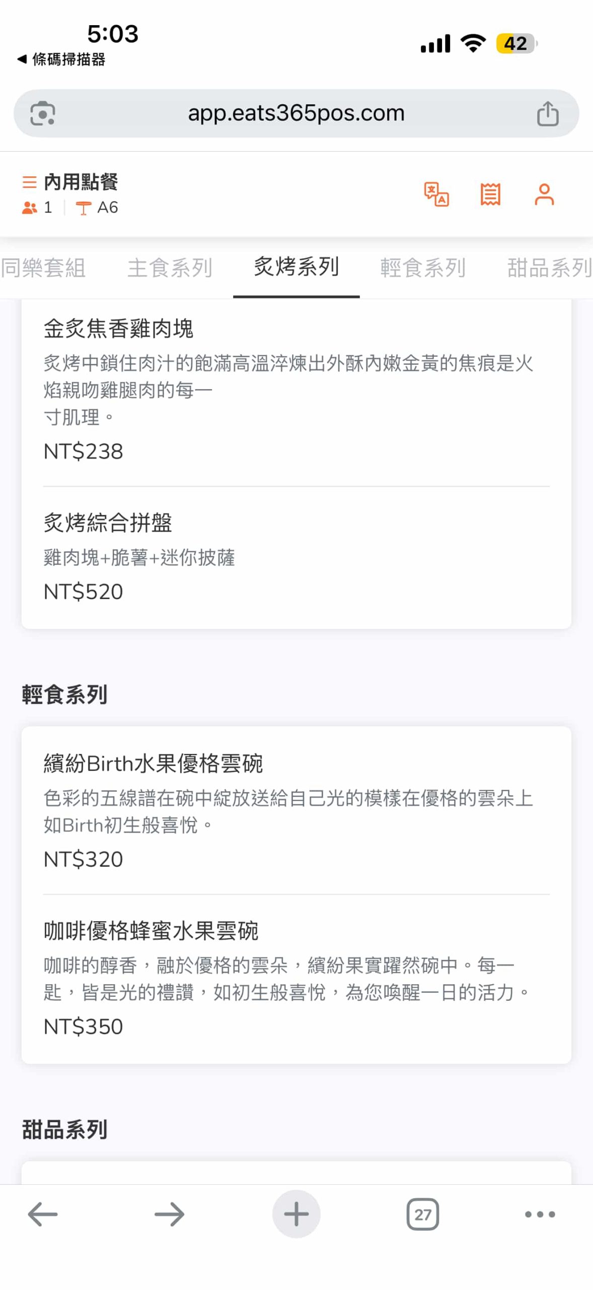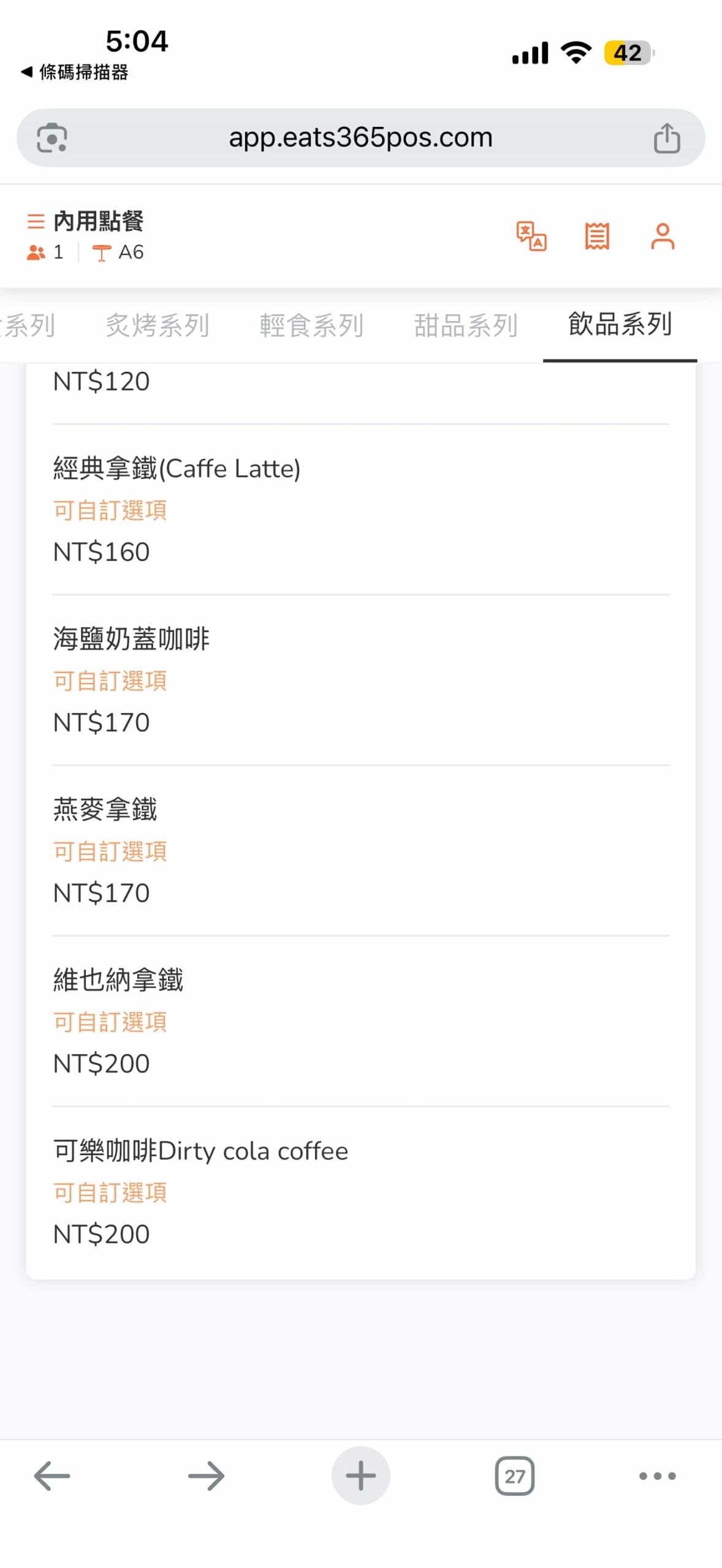 店家目前並未提供單張菜單,想嚐鮮的朋友請先參考線上點餐系統截圖囉!