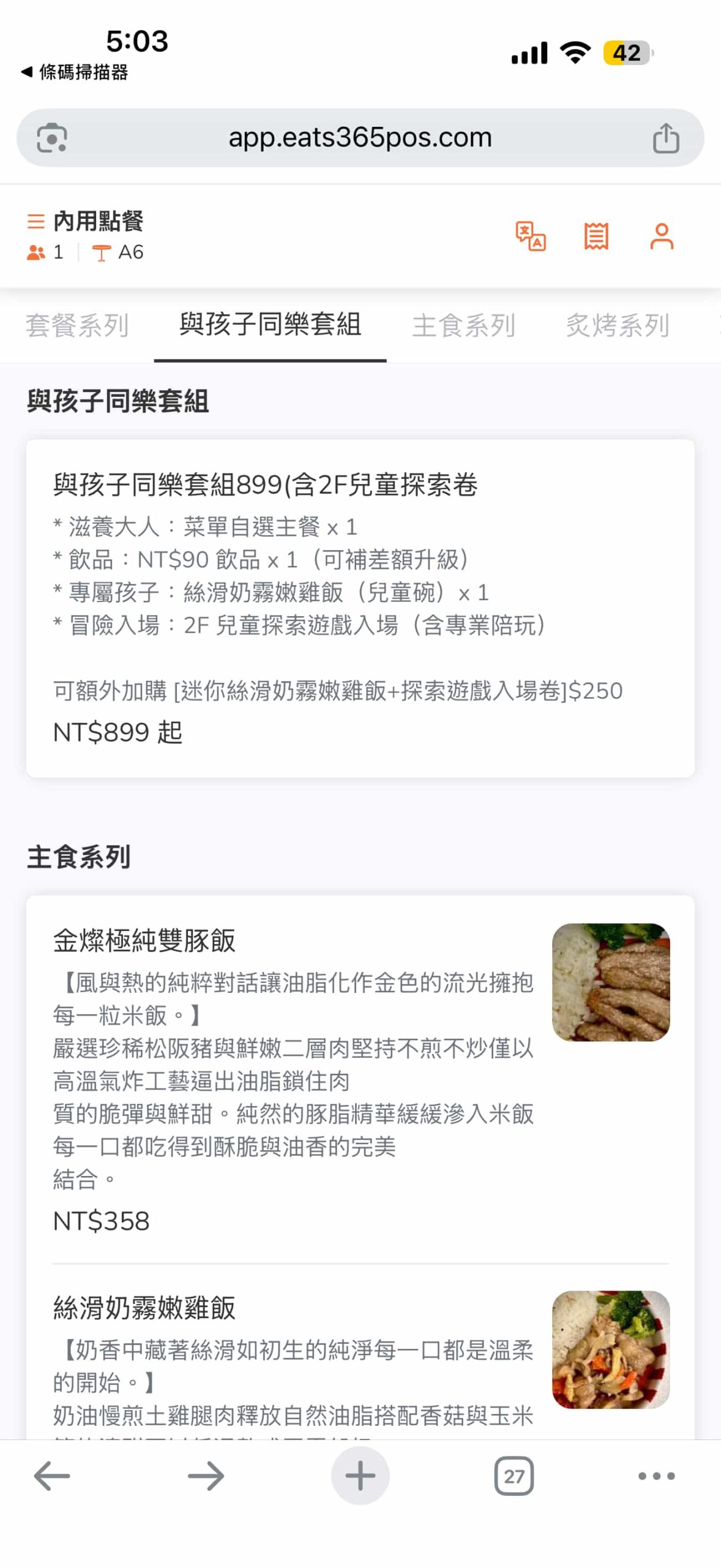 店內提供三種套餐組合,有 $399 輕食套餐、$499 主食套餐A和 $599 主食套餐B。我選中間價位的 $499 主食套餐A,包含主食、飲品、甜點各一。